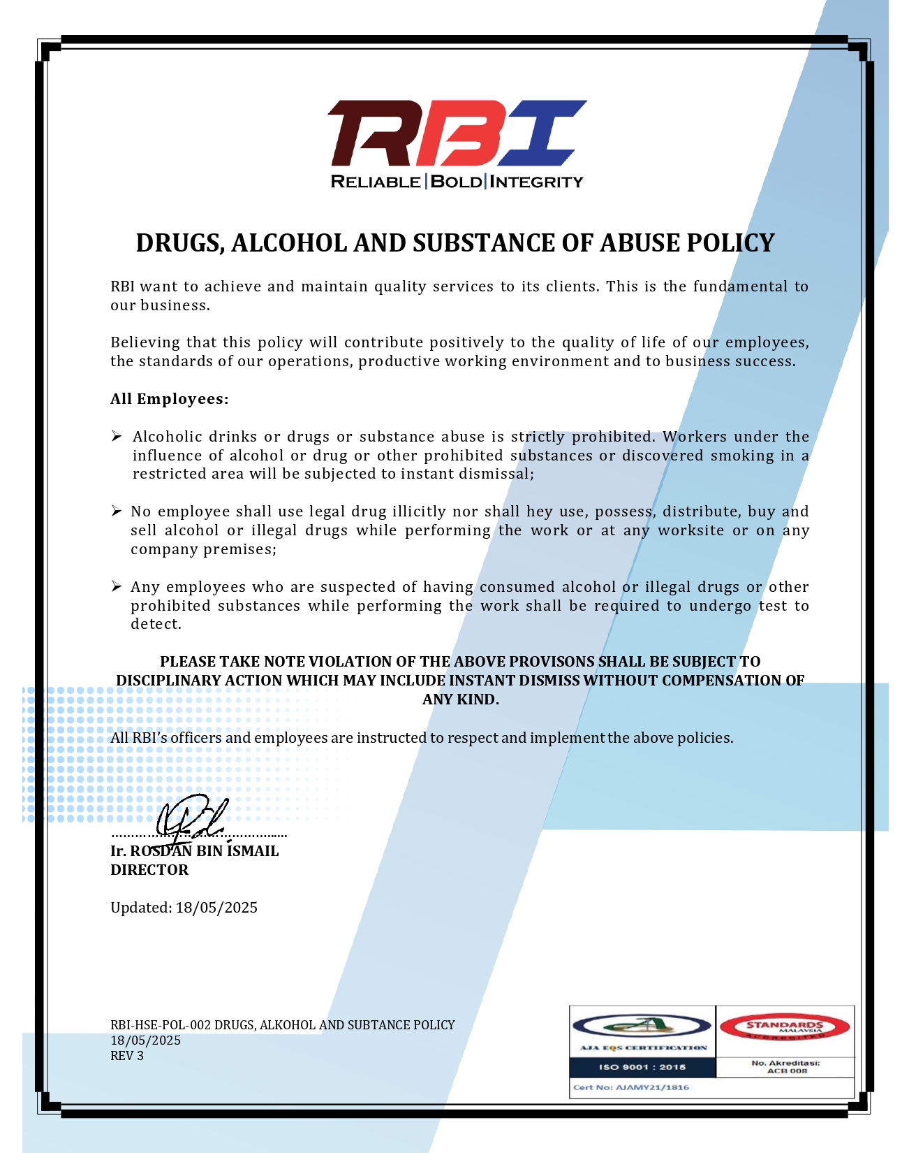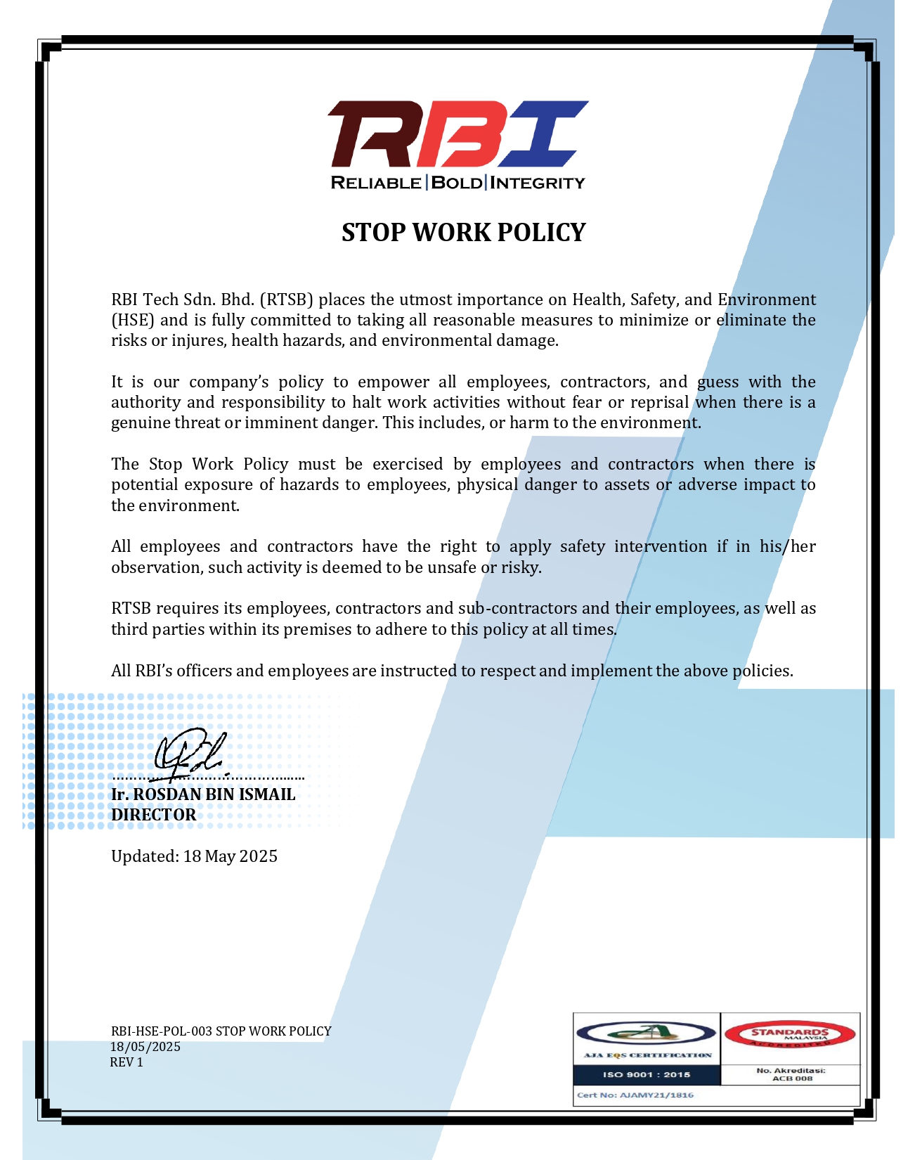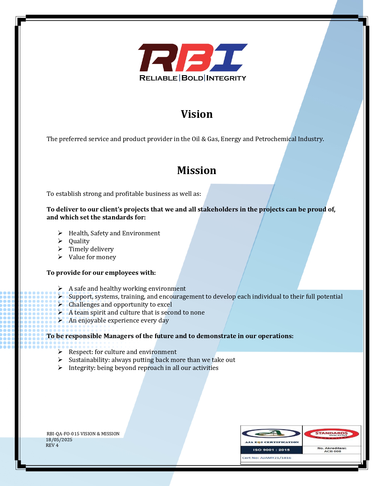 Our policies reflect our commitment to safety, integrity, quality and responsibility.