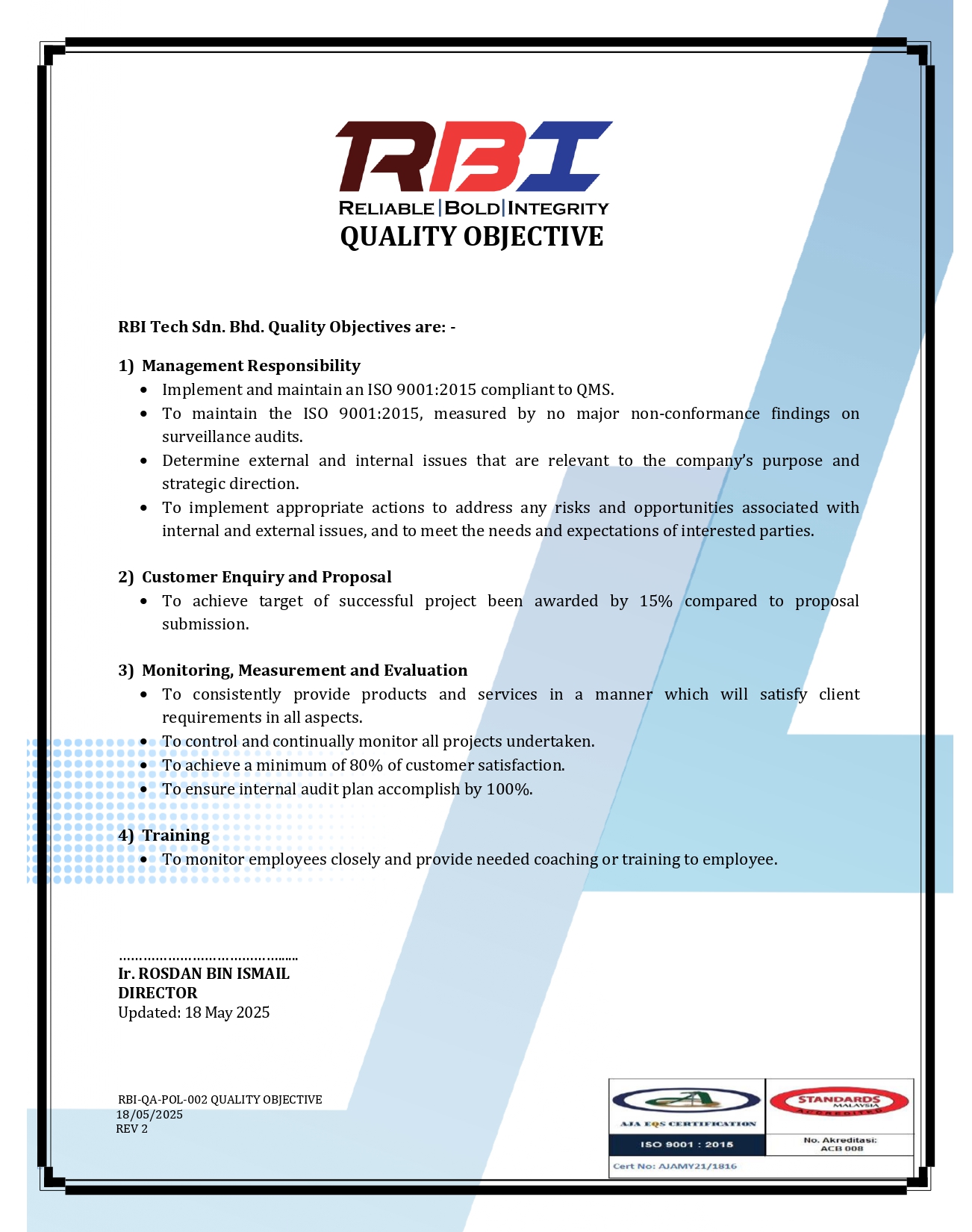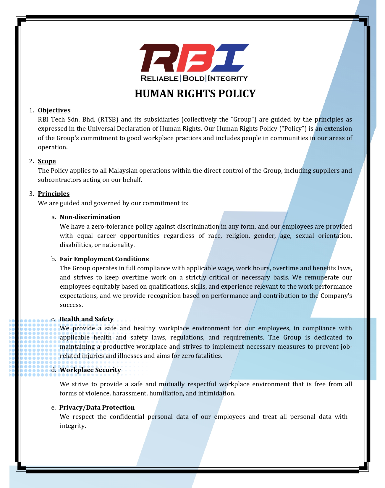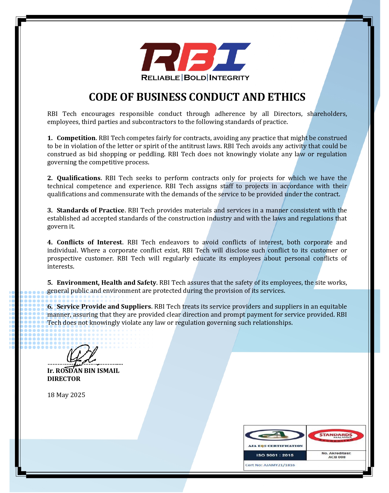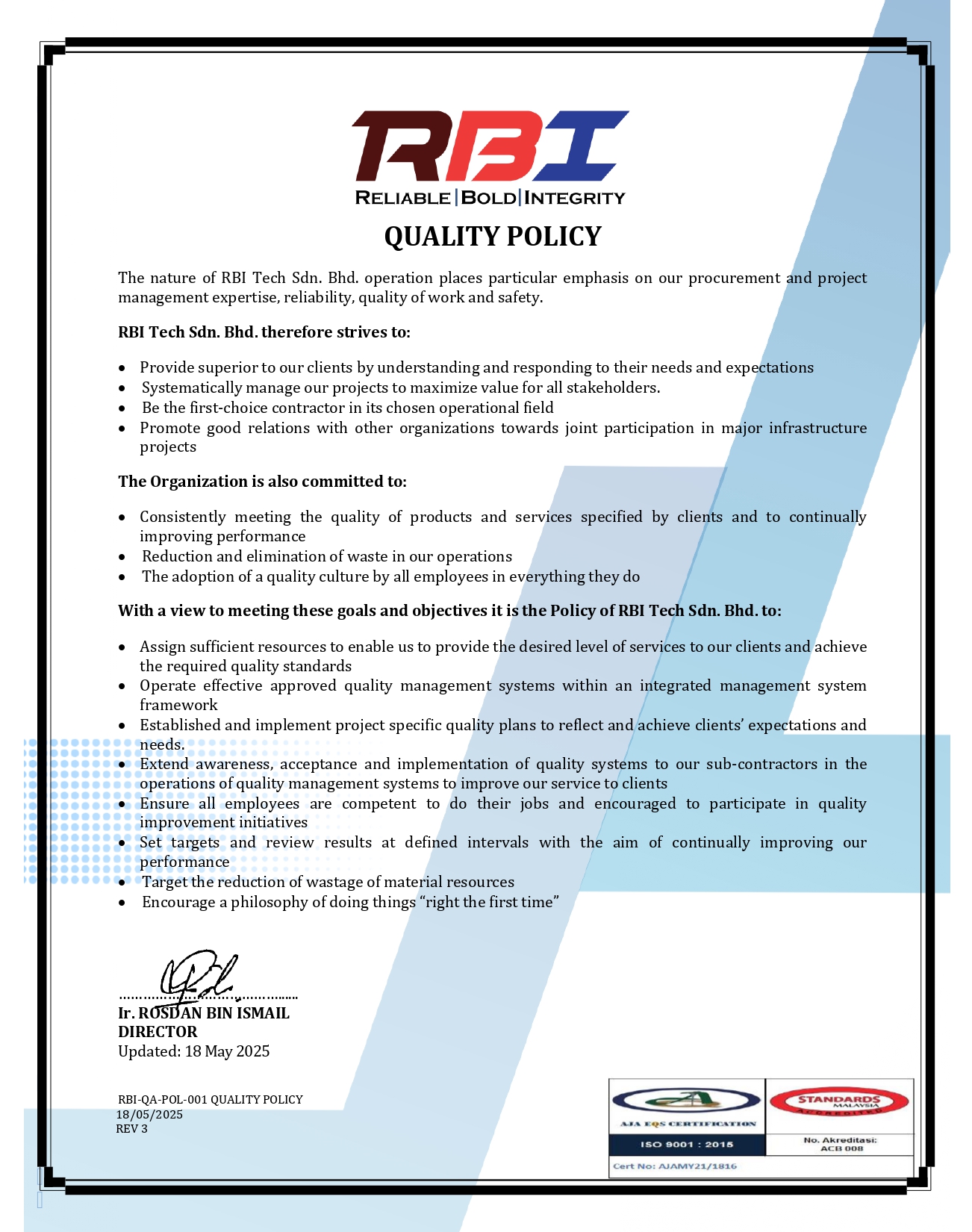 Our policies reflect our commitment to safety, integrity, quality and responsibility.